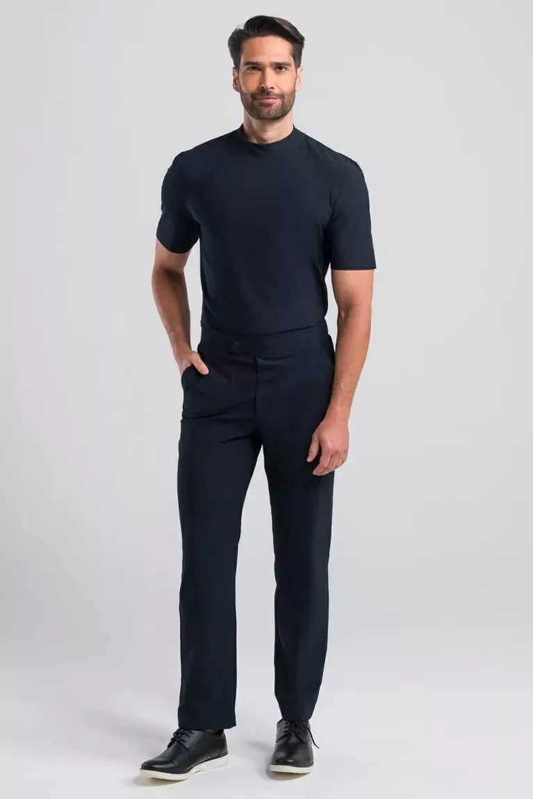 Scrub confeccionado em material 58% poliester 42% elastano. A blusa possui modelagem slim, manga curta, gola alta e silk coroa nas costas. A calça possui elástico no cós traseiro, fechamento por botão de pressão.